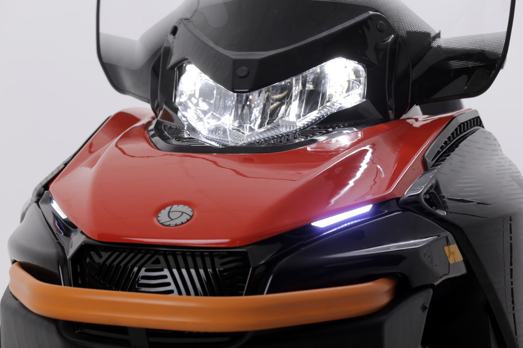 Для комфортного передвижения в темное время суток, «тысячник» оснащен мощной светодиодной фарой. Есть так же дневные ходовые огни, которые являются обязательным атрибутом для снегоходов, поставляемых на европейские рынки. Да-да, «Русская Механика» уже много лет успешно торгует своими моделями в Скандинавии, и Frontier 1000 не будет исключением.