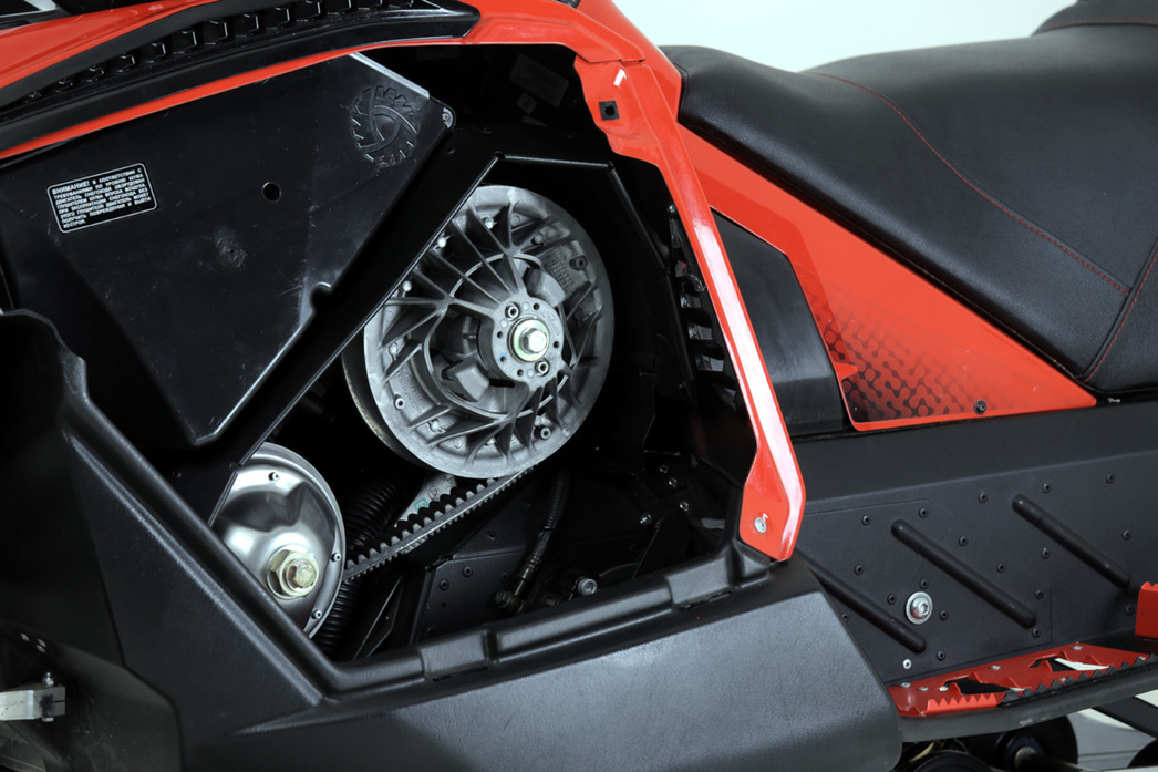 Мотор снегохода работает в связке с канадским вариатором. Да-да, это не опечатка. Вариатор не китайский, а действительно из Страны кленовых листьев от всемирно известного вариаторного гуру фирмы CVTech.