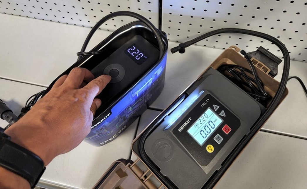 Особого внимания среди новинок от Berkut заслуживает самая производительная модель, обозначенная индексом SPEC−19. Агрегат отличает интуитивно понятное электронное управление и цифровой манометр с функцией «автостоп», когда при достижении заданного давления компрессор сам отключается. Аппарат снабжен 2-поршневым нагнетателем, сам он запитывается через розетку прикуривателя и имеет пониженное (не более 13 А) потребление тока.