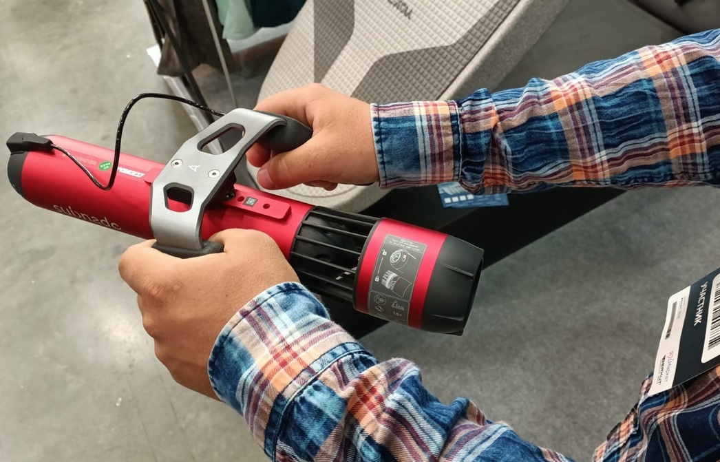 Среди «плавательных» новинок можно было увидеть и вовсе экзотические экземпляры. Так, заметный интерес публики вызвал электрический скутер для подводной охоты и дайвинга. В общем-то, такие изделия на рынке уже достаточно известны, но то, что мы лицезрели на выставке, заслуживает отдельного внимания. Дело в том, что скутер весьма компактен — его габариты сопоставимы с размерами небольшого термоса. При этом аппарат способен почти час тянуть за собой дайвера на глубинах до 60 метров. Впечатляет!