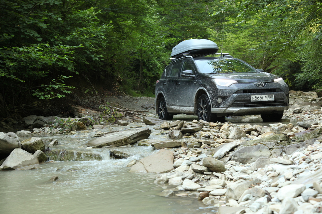Забраться в горы, пробраться через леса по руслу горной реки к живописному водопаду, насладиться видами со смотровых площадок на высокогорных плато — с RAV4 автотуристу все это вполне под силу. Да, местами его дорожного просвета было недостаточно, но в эти моменты очень выручала защита двигателя.
