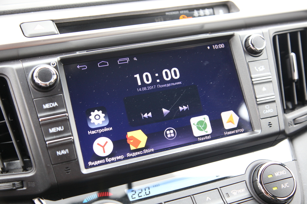 «Эксклюзивный» RAV4 ценой от 2 006 000 рублей базируется на комплектации «Престиж», добавляя к последней легкосплавные колесные диски особого дизайна размерностью 235/55 R18, пластиковый обвес серого цвета по периметру нижней части кузова и на арках, кожу в комбинации с тканью и замшей в салоне. А еще тут мультимедийный комплекс на базе Android с 8-дюймовым экраном и предустановленными приложениями «Яндекс.Навигатор» и «Navitel Навигатор», которые порой лишают возможности послушать музыку, ставя в приоритет ведение по маршруту.