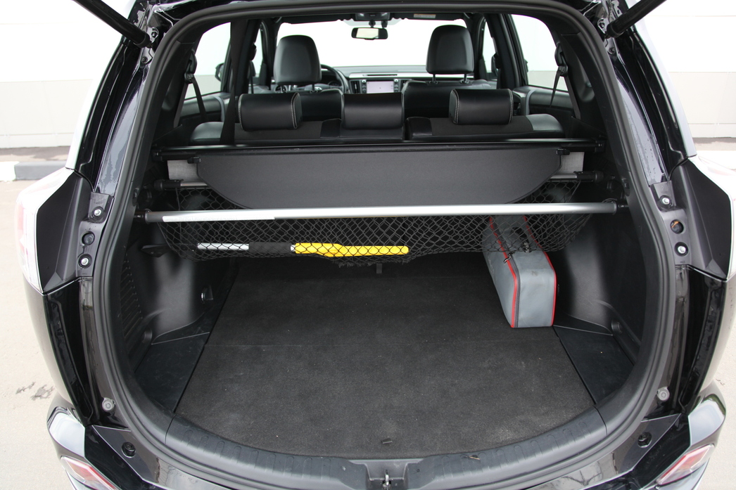 Удобство любого автомобиля быстрее оцениваешь, когда пытаешься впихнуть в него невпихуемое и раскладываешь по салону все свои девайсы, пытаясь найти для каждого место и подзарядку. И здесь RAV4 не подкачал. Не будь багажника на крыше, его родной грузовой отсек легко бы вместил три чемодана, сумку с аппаратурой, ноутбук, палатку, два спальника, коляску и кучу детских игрушек. Все-таки 577 литров — достойный объем для багажного отделения по меркам класса.