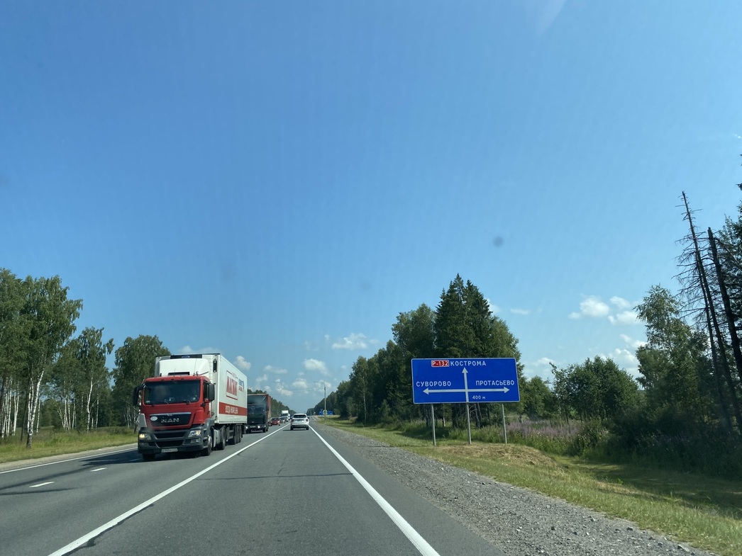 От блестящего, фактурного, разнообразного (ухоженного и запущенного, современного и старинного) Ярославля до Костромы — час езды по трассе Р132. Дорога вполне приличная, но «медленная» и с «подвохами» в виде «бесхозной» живности на асфальте. Двухполосная, с вменяемым числом камер и населенных пунктов, но довольно загруженная: обгоны затруднительны, если вы не любитель поиграть на своих и чужих нервах. Да и не особо живописная.