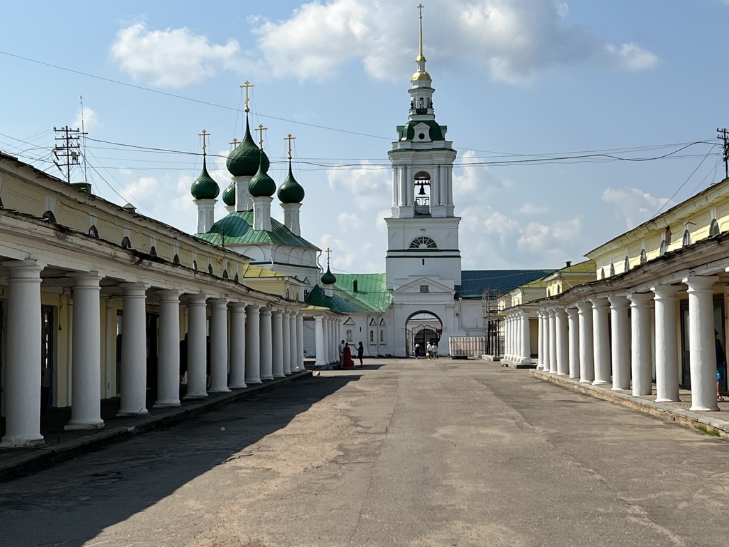 Но лучше свернем с нее в сторону торговых рядов, ведь мы еще не затарились льном и золотишком. Ряды занимают аж несколько кварталов — от бывшего Кремля до Сусанинской площади, но, увы, ничем любопытным странника порадовать не могут.
