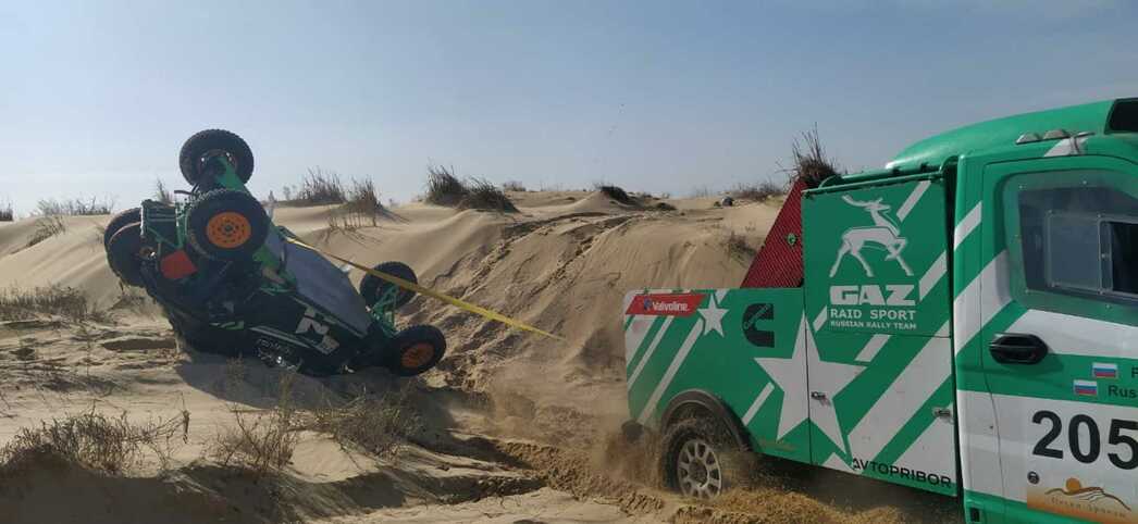 - В конце 2022 года изменили требования к автомобилям, выступающим в категории R, — рассказал порталу «АвтоВзгляд» пилот команды «ГАЗ Рейд Спорт» Евгений Суховенко. Раньше было ограничение объема двигателя 3 литра, сейчас его сняли. В результате в нашем классе выступает экипаж Алексея Черкесова на прототипе с двигателем объемом 7,2 литра. Сравните — на нашей спортивной «Газель Next» установлен стандартный Cummins объемом 2.8 л форсированный до 200 л. с. Понятно, что 2,8 л не может соревноваться с 7,2 л. Так что у нас шла борьба за второе место. Вчера мы потеряли время — пробили колесо и в песке закопались. В результате отставали от соперников на Toyota Land Criser 200 на 12 минут. И это на дистанции 147 км.