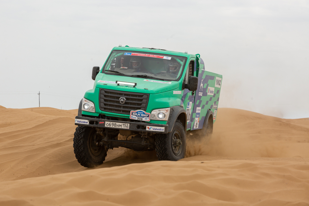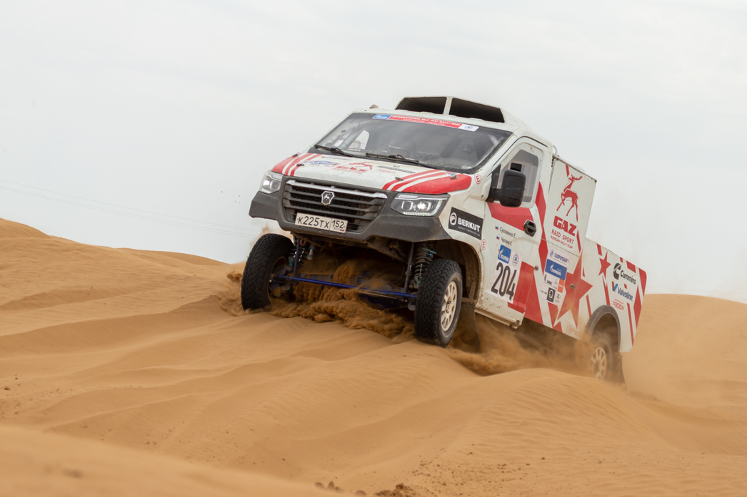 Экипажи Александр Русанов/Евгений Павлов и Евгений Суховенко/Кирилл Чапаев на спортивных «Газелях» из команды «ГАЗ Рейд Спорт» едут отлично — третий и четвертый результат.