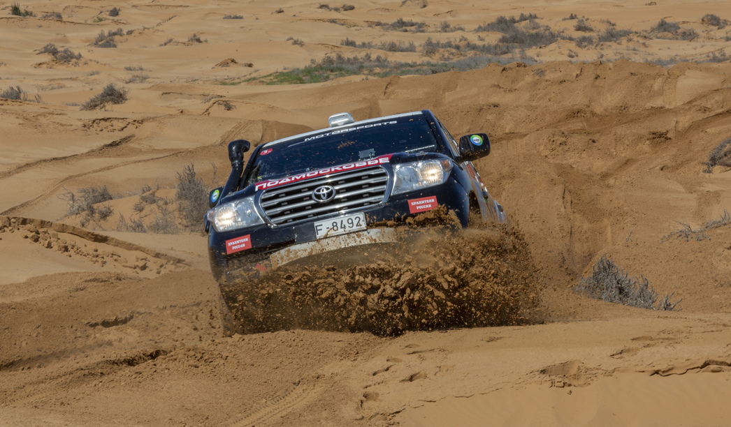Первый день — 20-километровый пролог, определяющий старт следующего дня соревнований. Самые быстрые едут впереди, тихоходы им не мешают. В Астрахань прибыли лучшие спортсмены страны: 43 экипажа на автомобилях и 10 человек на мотоциклах и квадроциклах.