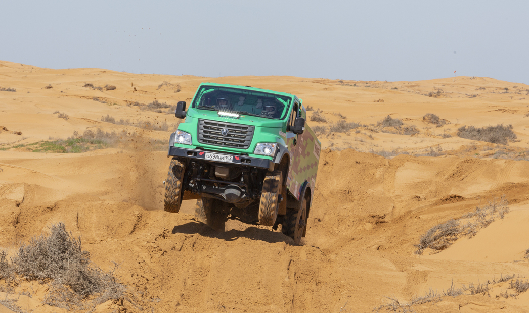 Теперь о грузовиках. У нас едет три спортивных ГАЗ «Садко». У них очень серьезные противники — три КАМАЗа и один МАЗ. Это призеры «Дакара»! Все они едут побеждать. Наши машины мы перестроили: поработали с трансмиссией и коробкой передач, настроили моторы. Серьезно облегчили, в первую очень ту, на которой выступает экипаж Алексея Хлебова. Эта машина — лидер. Она будет мчаться на уровне больших грузовиков. Да, в ускорении мы уступаем, но во всем остальном — управляемости, проходимости — ничем не хуже. В песках он себя покажет. Мы подняли максимальную скорость у этого грузовика до 155 км/час. Да, по правилам соревнования максималка ограничена 140 км/час, но это означает, что у нас есть запас по мощности и ускорению!