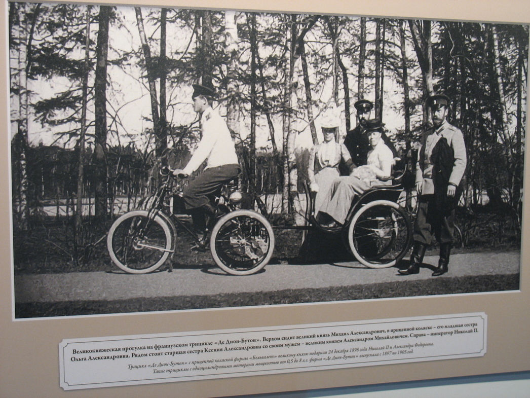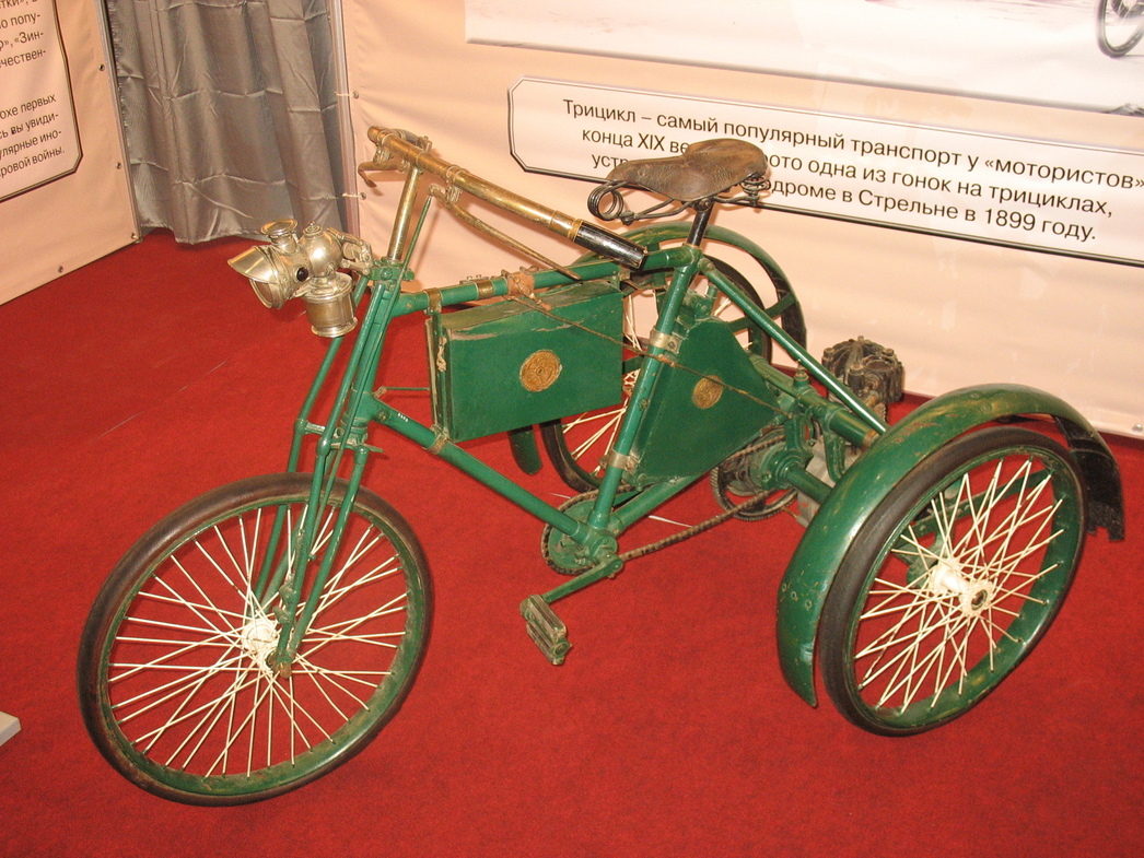 Называется это чудо техники — моторный трицикл Cudell. Проще говоря, трехколесный мотоцикл. Такие одноместные «керосинки» выпускали в Германии с 1898 года. На трицикле установлен двигатель мощностью 0,5 л. с., чего было вполне достаточно, чтобы разгоняться на «Куделе» до 20 км/час даже со специальной пассажирской коляской. Таковые выпускались для трициклов в двух вариантах: одну следовало крепить сзади в качестве прицепа, а другая могла устанавливаться спереди — взамен снятого переднего колеса (в этом случае трицикл превращался в квадроцикл). Сохранились фотографии, на которых члены императорской фамилии катаются на трицикле (правда, другой модели) с прицепом.