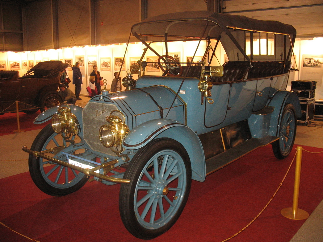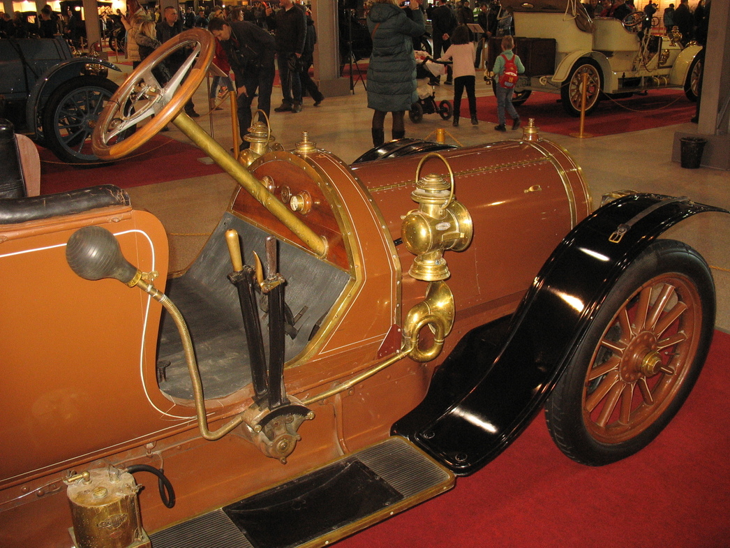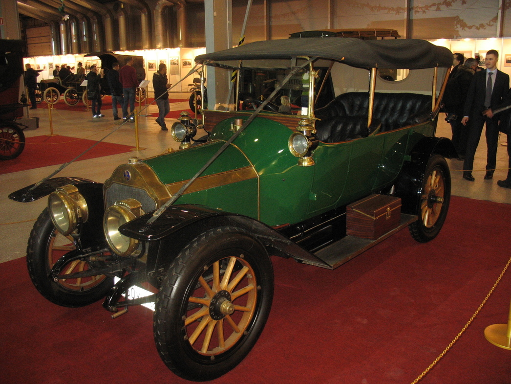 На нынешней выставке демонстрируется De Dion-Bouton Model Z. Такие автомобили, снабженные одноцилиндровым двигателем мощностью 8 л.с. начали выпускать с 1903 года. Они имели уже классическую компоновку с двигателем, расположенным впереди под капотом. А вот с точки зрения пассажиров, «классики» никакой еще не было: людям приходилось попадать в автомобиль через дверцу в задней стенке кузова.