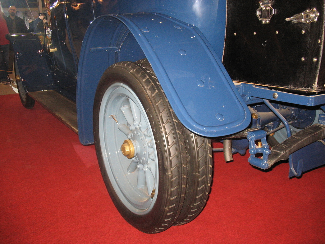 На нынешней выставке представлены два «Бельвиля». Причем 40-сильный Delaunay-Belleville 40HP, выпущенный в 1905 г., является «близнецом» одного из автомобилей, закупленных для императорского гаража. Интересно, что даже у этого, отнюдь не самого внушительного по весу представителя семейства «бензиновых паровозов», сзади установлены двойные скаты.