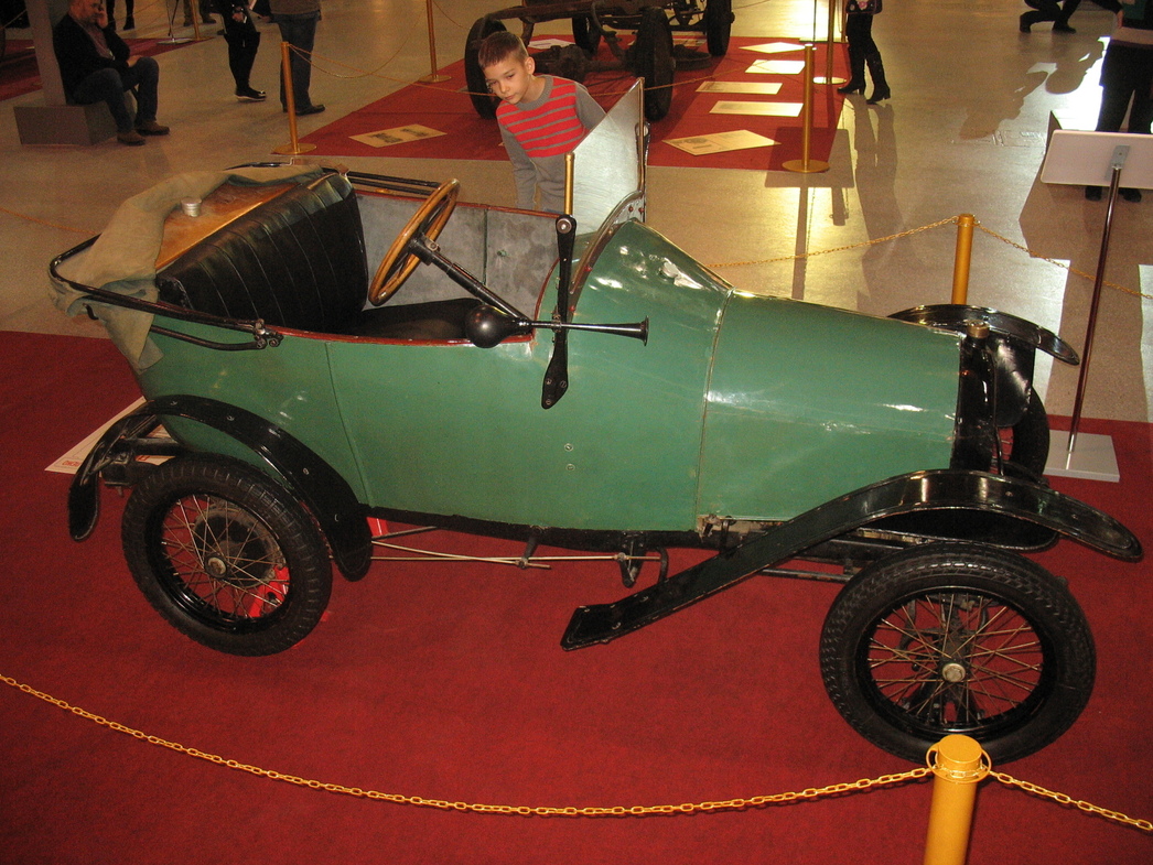 По всем статьям уникальный автомобиль — Peugeout Bebe. Крошечная малолитражка, в которой и двоим-то поместиться трудно. Максимальная простота: отсутствуют фары, задний фонарь, а на передней панели ни одного прибора нет! Благодаря 10-сильному двигателю автомобильчик мог разгоняться до 65 км/час. Такие «игрушки» знаменитая французская фирма стала выпускать с 1912 года. А в 1914-м один их «Бебе» был куплен императором в подарок своему сыну. Цесаревич Алексей освоил шоферские премудрости и ловко рулил на своем Peugeout по аллеям дворцового парка. Впрочем юному водителю было категорически запрещено родителями разгоняться быстрее 10−15 км/час.