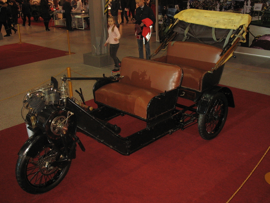 И вновь речь пойдет о трехколеске. На сей раз под названием Phanomobil 4/9PS. Мотоциклом назвать «это» уже не хочется. Данная конструкция удивляет своей компоновкой. Двухцилиндровый двигатель мощностью 6 л. с. смонтирован прямо на вилке переднего рулевого колеса. Наверняка поворачивать его при маневрировании тяжеловато — при такой-то дополнительной массе! Однако конструкторов выручил старый проверенный вариант: по традиции, свойственной всем ранним «бензиномоторам», они вместо рулевой «баранки» снабдили Phanomobil простым длинным рычагом, — эх, пассажир на переднем сидении, поберегись: поворачиваю! Хотя странная конструкция вполне могла разгоняться до 50−60 км/час, а рекламные объявления расхваливали данные автомобили, как «самые экономные по цене и содержанию», однако большого спроса на них среди российских автомобилистов достичь так и не удалось.