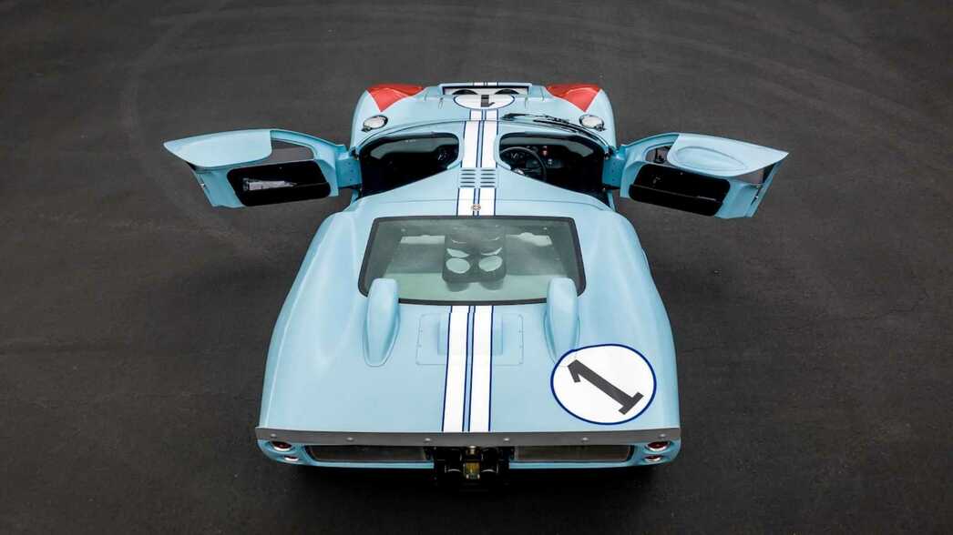 Новодел Ford GT40 MkII, внешне схож с оригиналом, выступившим в 1966 году в гонке «24 часа Ле-Мана». Но технически современник сильно отличается. Так, копия получила ту же форму, ливрею, салон и даже идентичные колесные диски, что и прототип.