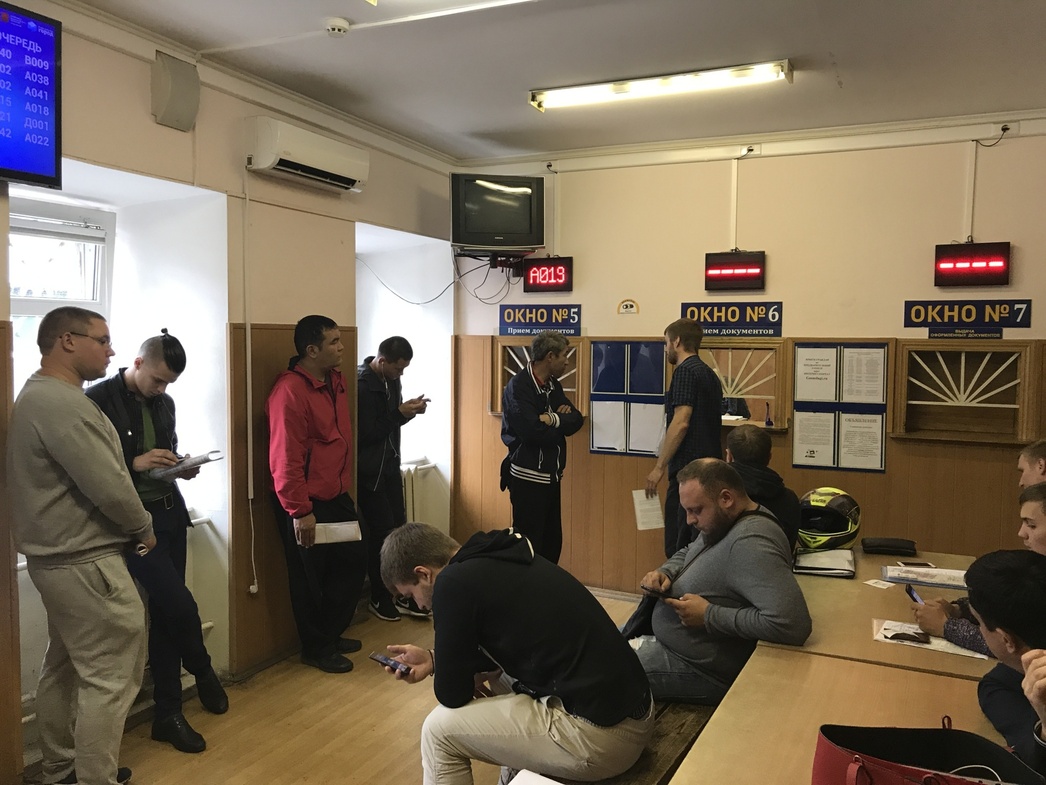 15.00—15.35. Вторая попытка подать бумаги для получения СТС. К окну для «госуслужников» подходит дама и заявляет, что записывалась через сайт, но на вчерашний день. По правилам, прописанным на gosuslugi.ru, ей в услуге должны отказать. Но нет: инспектор отправляет клиентку в 17-й кабинет для решения проблемы. Его хозяин проблему — в ущерб остальным страждущим — решает положительно. А мы до сих пор восхищаемся находчивостью гайцов: это ж сколько людей со стороны можно пропускать по такой схеме без очереди? И уж как последние будут благодарны! И сразу стали понятны все проволочки, задержки и резко возросшее к нашему возвращению в отдел число ожидающих гаишных милостей.