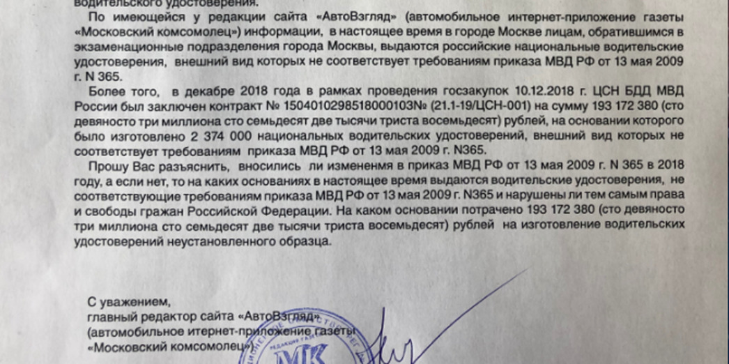 Увы, но к моменту подписания номера в печать портал «АвтоВзгляд» не получил ответа на свой запрос в МВД РФ относительно сложившейся ситуации. Мы продолжаем следить за развитием событий.