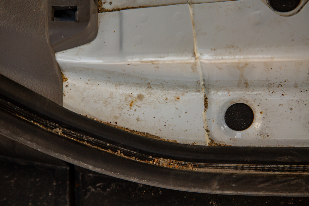 Четыре тысячи километров — это неделя нормальной работы в логистике? Две? В такси столько проезжают за седьмицу или около того. Но ржавые подтеки на петлях, в арках, на пороге багажного отделения и сотне других мест уже в наличии. Вряд ли этот автомобиль познал зиму в полном объеме, однако и тех недель, что точно мерз, оказалось достаточно: Sollers Atlant отчаянно «зацвел» по весне.