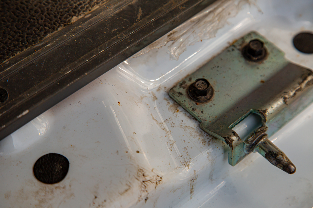 Досталось и дверям: нижние рамки уже забиты землей и грязью, так что появление ржи себя ожидать не заставит. Самая известная доска объявлений на соответствующий запрос предлагает только детали холодильников, а интернет предательски молчит. Даже на исходник — JAC Sunray — ничего не находится.
