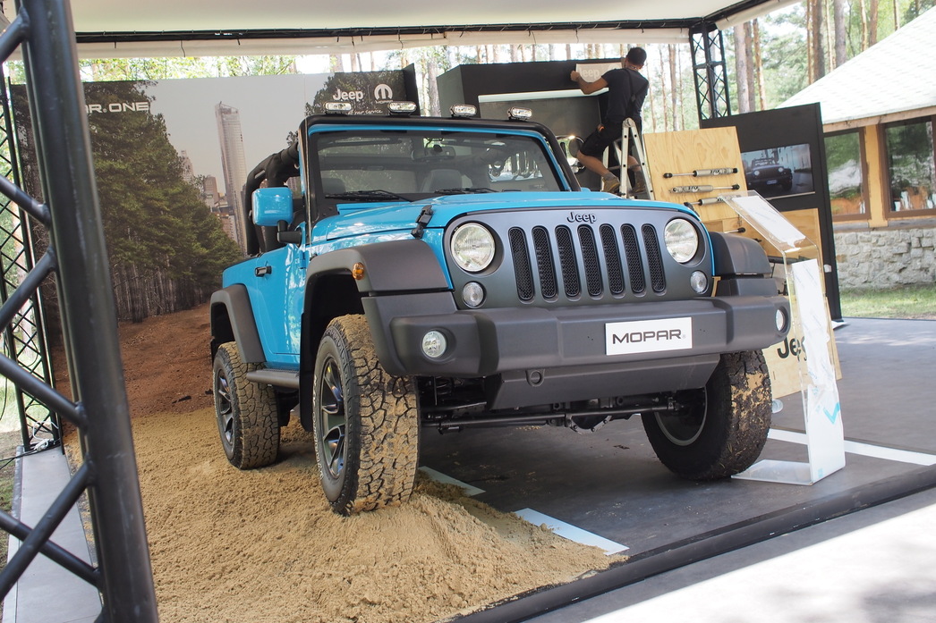 В некотором отдалении от главной дороги лагеря, но в непосредственной близости к пресс-центру установила стенд компания Mopar, представившая пакет аксессуаров One Pack для модели Wrangler, закатив для этой цели на импровизированный бугорок модернизированную машину.