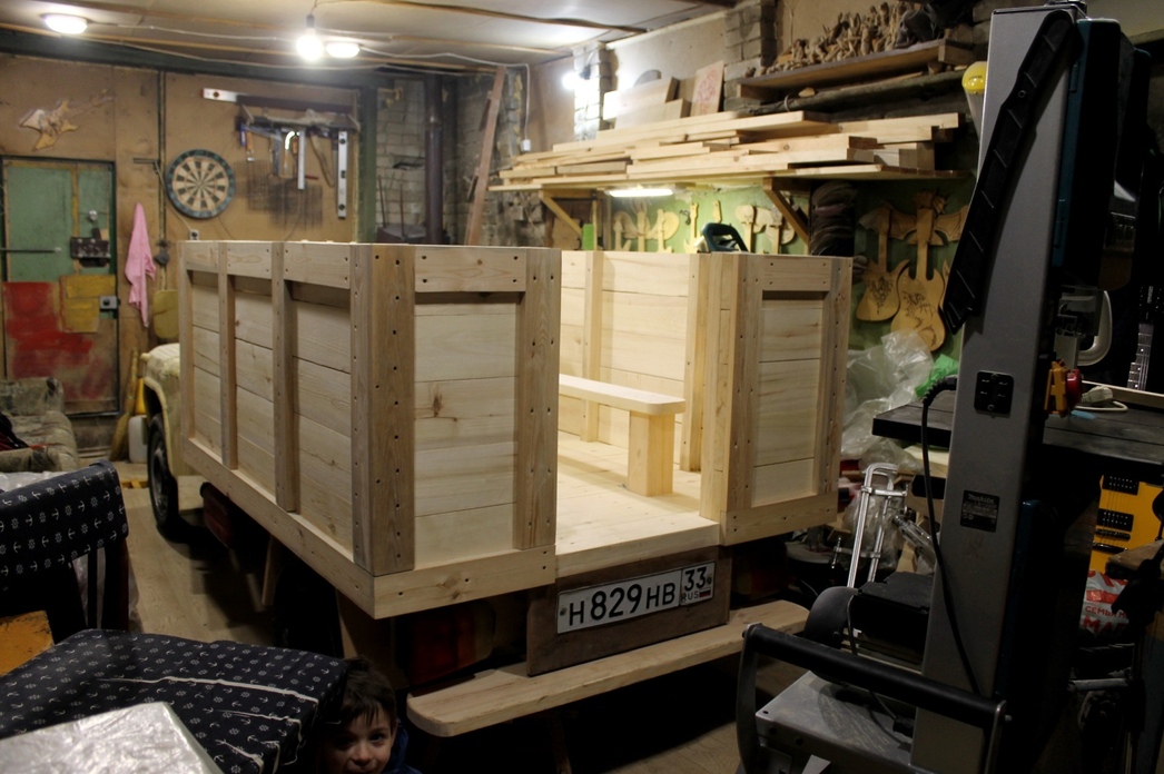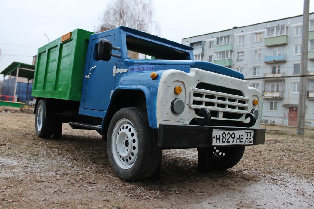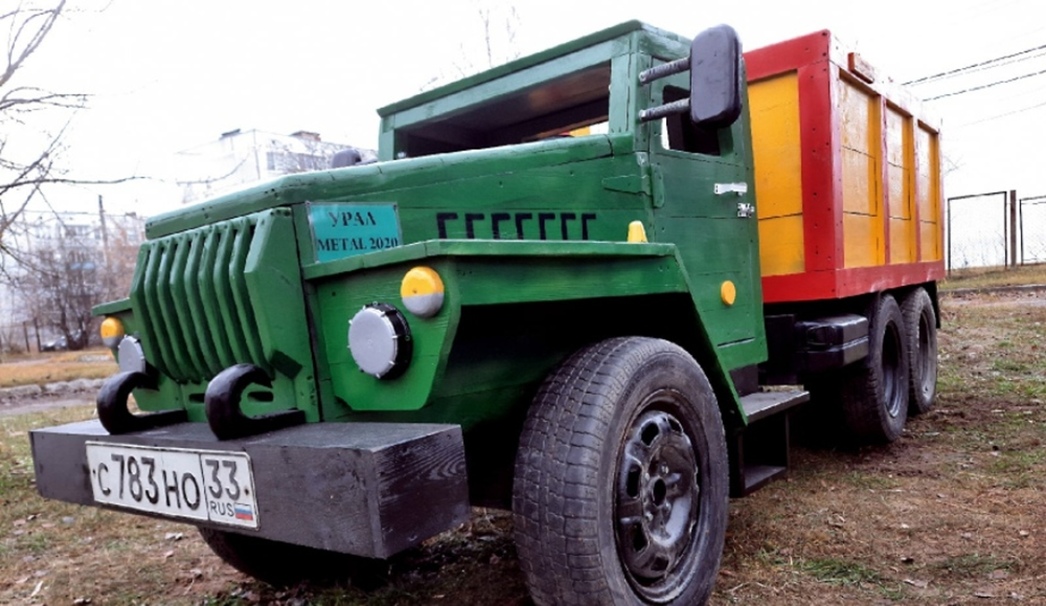 За плечами Василия Лютницкого — уже три максикопии советских грузовиков. Сперва мастер сделал для детей ГАЗ-3307, затем воспроизвел из дерева ЗиЛ-130, а теперь на площадке садика появился трехосный «Урал». Как отмечает автор, на каждую фигуру требуется материала примерно на 50 000 рублей, а весит такой грузовик около тонны.