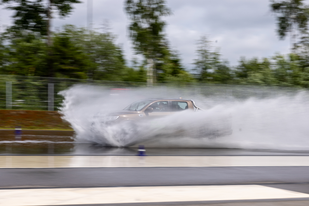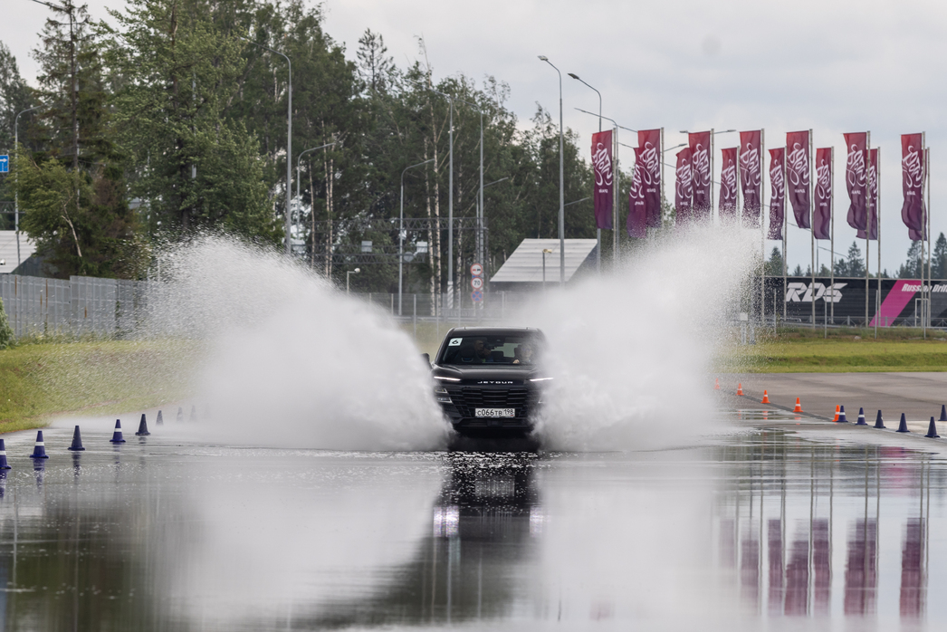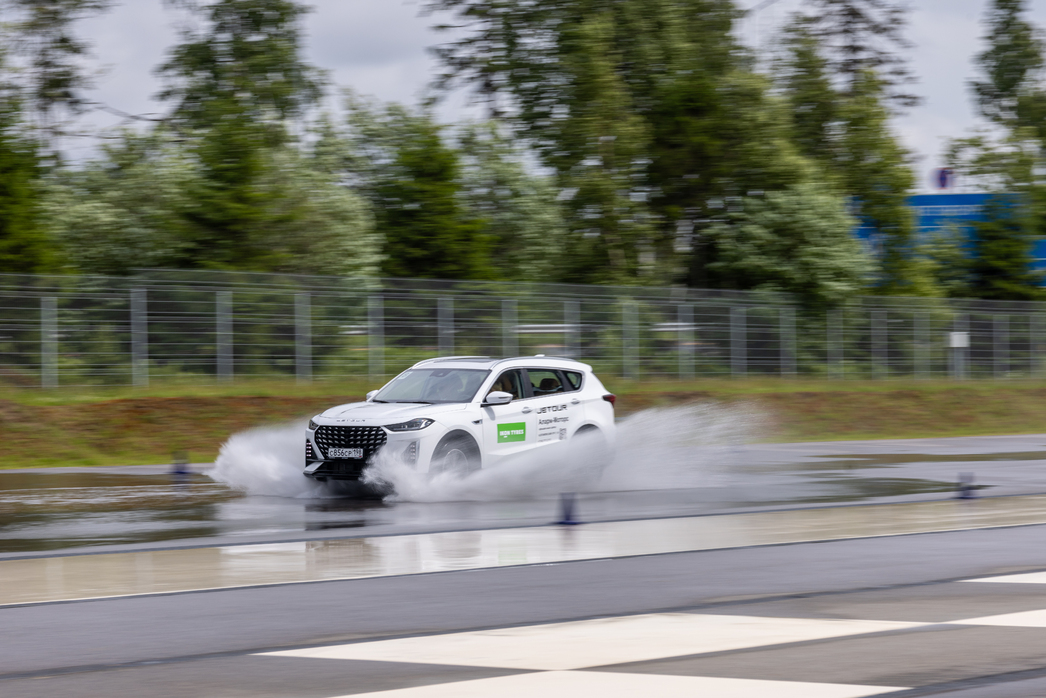 Здесь вам и зоны для экстремального торможения с моделированным покрытием разной степени сцепления, и «спецлужа» для анализа и контроля порога начала аквапланирования, и моделирование скользкой дороги при маневре.
