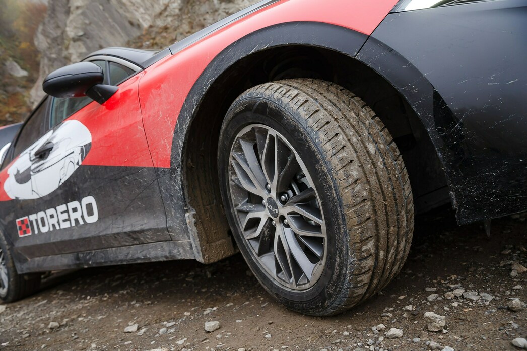 Но осмотр со снятием покрышки повреждений не выявил, а датчик давления «выстрелил холостым», после чего погас. Давление мерили, грыжи искали — не нашли. Сколько ни долбили «Тореро» о ступеньки и острые грани свежесрезанного асфальта, сколько по камням ни гоняли, а выжать хоть каплю снисхождения не удалось — шины испытание выдержали. Причем — четыре шины из четырех.