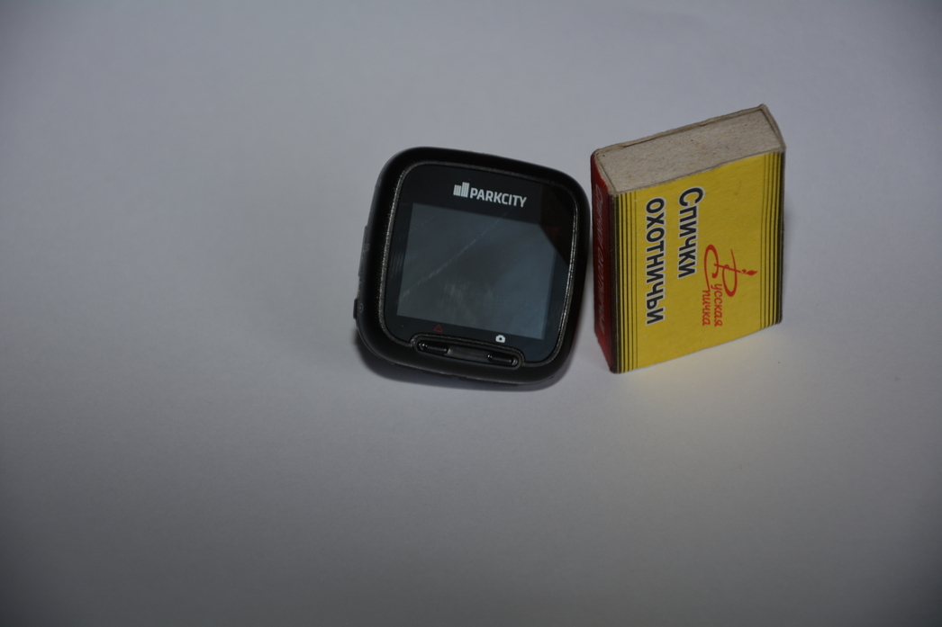 Parkcity HD 592 по-настоящему мал: спичечный коробок и то крупнее. Вот только внушительный «хоботок» объектива на одной из плоскостей маленькой черной коробочки видеорегистратора намекает, что эта штуковина может снимать.