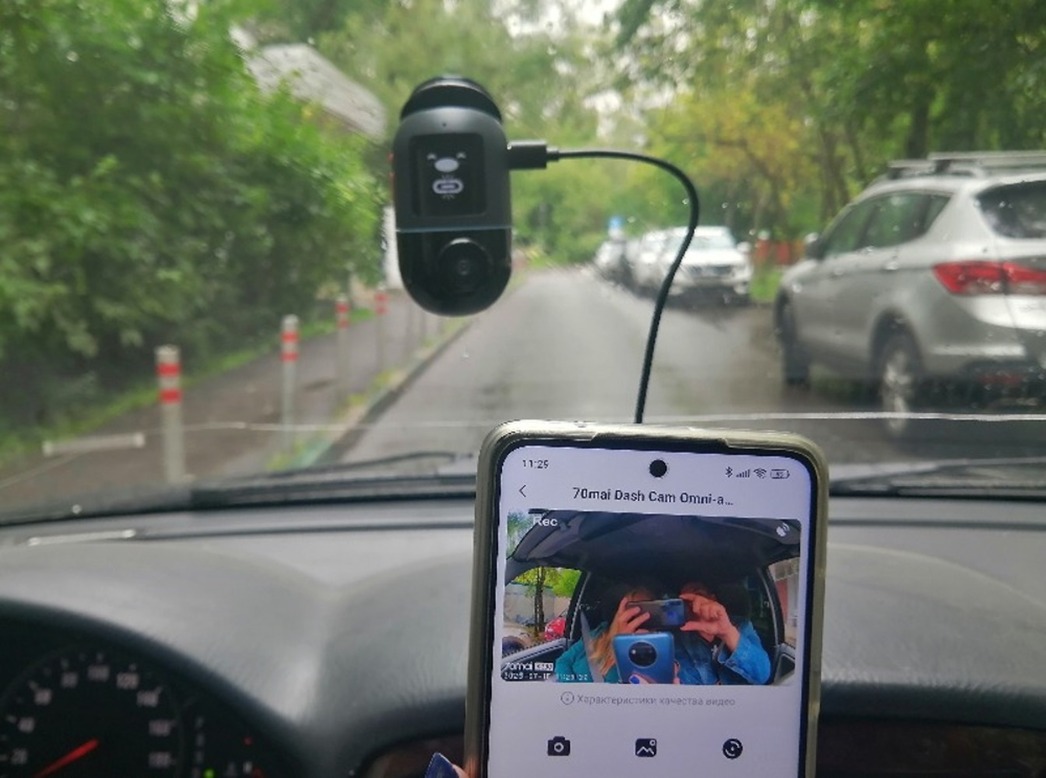Если вы думаете, что с этим регистратором после установки и подключения можно поступить точно также как и с любым его предшественником, вынужден вас разочаровать. Просто направить, куда нужно объектив, отрегулировать качество съемки и забыть про него не получится. Чтобы он заработал, следует скачать на смартфон фирменное приложение 70mai, зарегистрироваться в нем, активировать Wi-Fi на телефоне, получить пароль и с его помощью «подружить» Omni X200 со своей «звонилкой». После этого к вашим услугам окажется его камера, записывающая видео с качеством Full HD (1920x1080p). Далее вам уже не нужно будет всматриваться в маленький экранчик на самом регистраторе. Видео начнет непрерывным потоком литься на монитор вашего смартфона. А через приложение можно будет управлять объективом регистратора. Он вращается электромотором на 360°, позволяя направить камеру в любую сторону. Она может снимать и дорогу впереди, и происходящее в салоне, и фиксировать происходящее сбоку от машины.