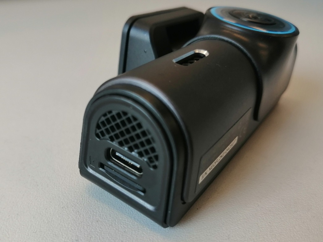 На одном из торцов расположен вход провода питания (Type-C) и слот под microSD-карту. С другой стороны находится его единственная кнопка, отвечающая за включение-выключение устройства и форматирование карты. Емкость последней тут, кстати, может доходить до 256 ГБ. Это — не блажь и не рекламная «замануха». Дело в том, что эта модель видеорегистратора обеспечивает качество съемки в формате 2К либо FHD — по желанию владельца. Это означает, что просматривать снятое им видео можно хоть на телеэкране. Не говоря уже о мониторе компьютера или смартфона.