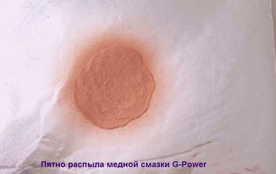 На первом каждый медный аэрозоль распыляли кратковременным 1-секундным «выстрелом» с расстояния примерно 20 см на вертикально размещенную фольгированную пластину (см. фото выше). Через минуту после этого эксперты пластину снимали и качественно (визуальным способом, по 10-бальной шкале) оценивали диаметр и форму пятна распыления смазки, прилипшей к алюминиевой фольге, а также адгезию к ней.