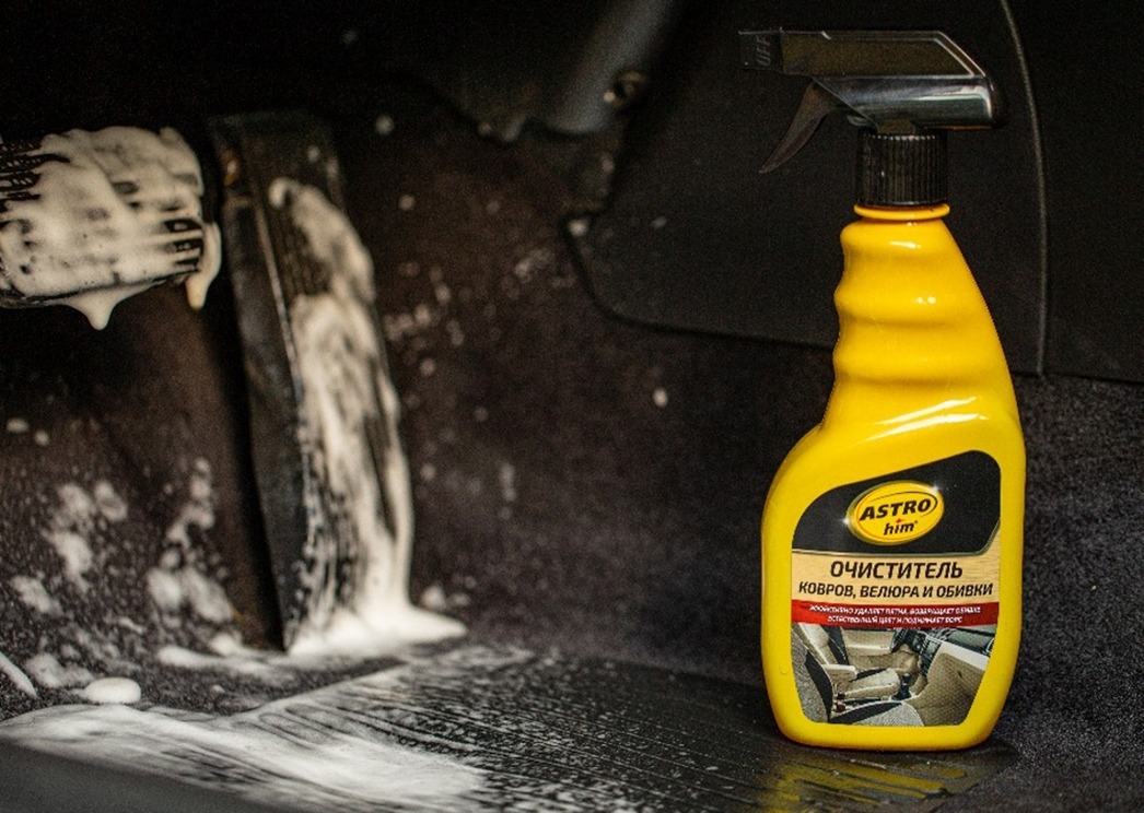 Лучший способ привести салон, а именно ковры и сидения в первозданное состояние — это специальные составы на основе пены, которая, попадая на грязную поверхность, начинает темнеть, буквально вбирая в себя грязь. Принцип работы у всех таких средств схож, надо лишь выбрать подходящее по «способностям» и по бюджету. Например, Очиститель ковров, велюра и обивки ASTROhim стоит около 300 рублей, но при этом справляется даже с застарелыми пятнами. Состав при нанесении ложится плотной пеной, которая садясь, поднимает на поверхность всю грязь.