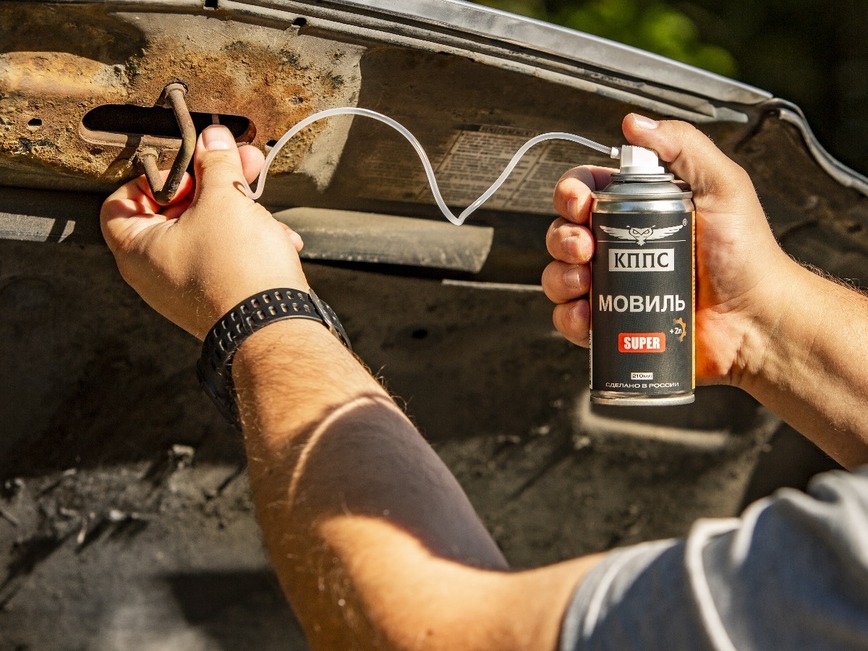 Например, полости капота, который с годами набирают грязи, и, будучи закрытыми от возможности очистки, начинают гнить. Как победить эту проблему и отложить покупку новой детали? Нанести консервирующий состав. Удобно, что у Мовиля КППС в комплекте идет специальная трубка, позволяющая подлезть в самые труднодоступные места и состав наносить точечно, а не разливая его по всей плоскости в надежде, что дотечет везде. Обрабатывая таким образом капот хотя бы раз в пару-тройку лет, можно спасти оригинальную деталь от ржи, тем самым и сохранив семейный бюджет, и значительно повысив стоимость машины на продажу: родная деталь — есть родная деталь.