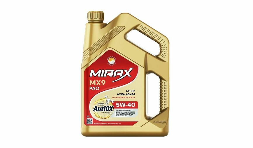 Начинаем обзор с синтетического масла MX9 5W-40 от постепенно набирающего известность бренда Mirax. Описывая рецептуру своего продукта, производитель заявляет о наличии в составе «синтетики» PAO (полиальфаолефины) и пакета присадок от известного европейского производителя Infineum.