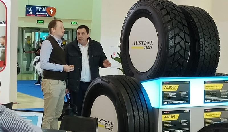 Из числа других шинных компаний, приехавших на «Комтранс», стоит отметить и предприятие «Росшина-Инвест». Этот импортер автопокрышек продемонстрировал на выставке сразу две зимних новинки марки Austone BorealiaPro — широкую рулевую шину-«пятитонку» 385/65R22.5 T803, а также модели 315/70R22.5 D802, предназначенные для установки на рулевой и ведущей осях. Обе грузовые покрышки разработаны совместно с компанией Prinx Chengshan Tire Company специально для жестких условий русской зимы, когда многие трассы оказываются покрыты обледеневшим снегом.