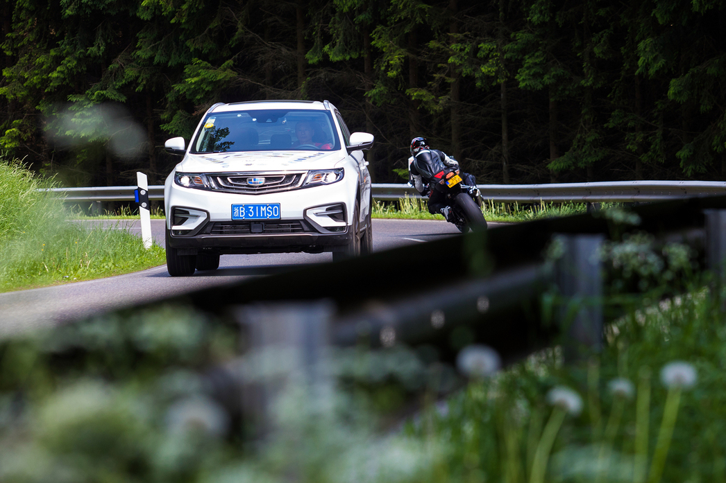 И Geely Atlas, надо сказать, держался молодцом. Запах сцепления и тормозов — обычная история после покатушек на треке. На свои технические характеристики и деньги этот «поднебесный» кроссовер едет вполне.