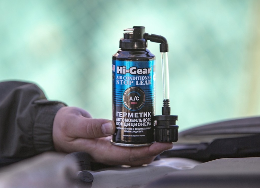 У американского бренда Hi-Gear имеется новинка — удобный и простой в применении «Герметик автомобильного кондиционера». Принцип использования предельно прост: интегрируем флакон в систему через магистраль низкого давления (благо переходник идет в комплекте), заводим двигатель, включаем кондиционер и ждем 15 минут. Внутри баллончика находится тот самый хладагент R-134а и специальные присадки, которые, выходя из места утечки, полимеризуются от контакта с воздухом и закупоривают лишнее отверстие. Ни одна трещинка не будет пропущена!