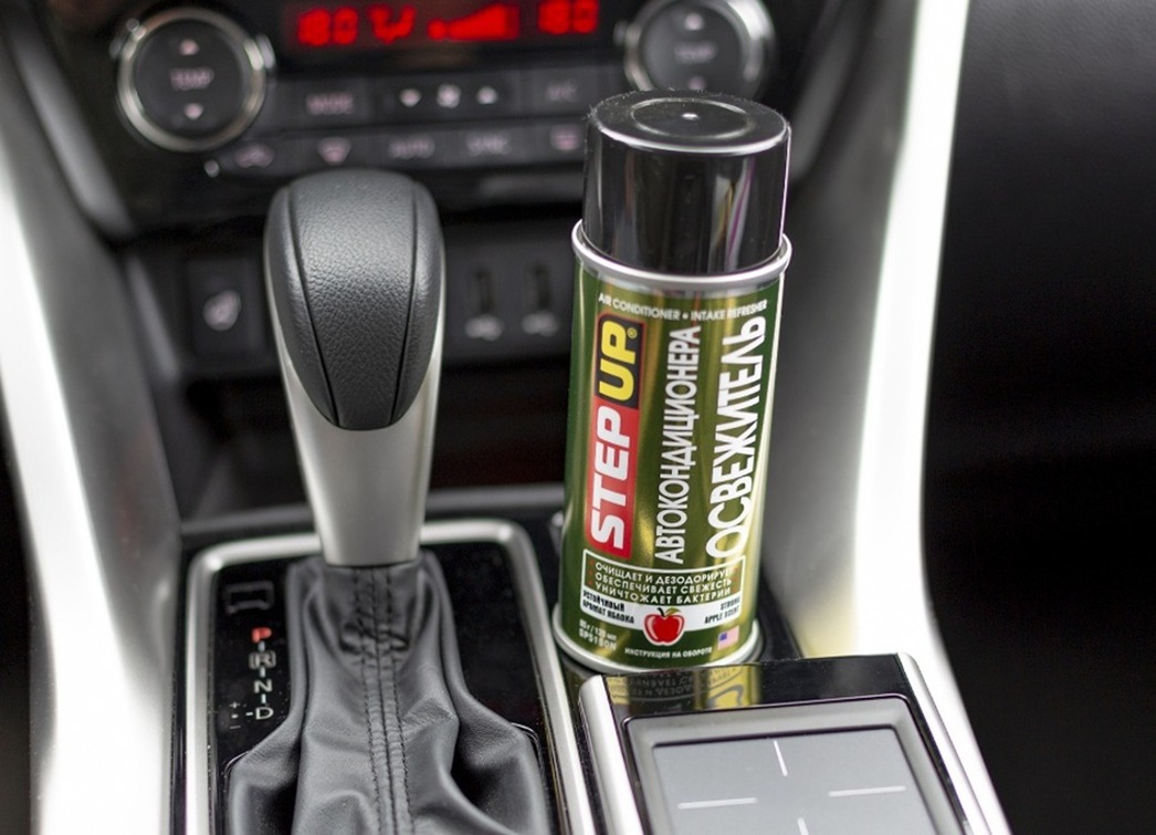 Если автомобиль еще молод и полон сил, то подойдет самый простой и доступный метод — «Освежитель кондиционера» марки StepUp, который очистит и обеззаразит систему кондиционирования и воздух в салоне. Покупать специальную отвертку и ломать тонкие клипсы пластиковых деталей не потребуется — профессиональная химия уничтожит бактерии и вирусы в системе, предотвратив их дальнейшее размножение, без разборки салона. Методика весьма проста: заводим авто, включаем систему рециркуляции воздуха и кондиционер на полную мощность, закрываем окна и ставим на пол в ноги пассажирского кресла переднего ряда флакон с очищающей жидкостью. Зафиксируем клавишу, и препарат начнет подавать мощный поток «химии», которая по умолчанию будет «всасываться» в систему — рециркуляция ведь включена. Салон автомобиля следует покинуть, дав составу поработать весь отведенный срок.