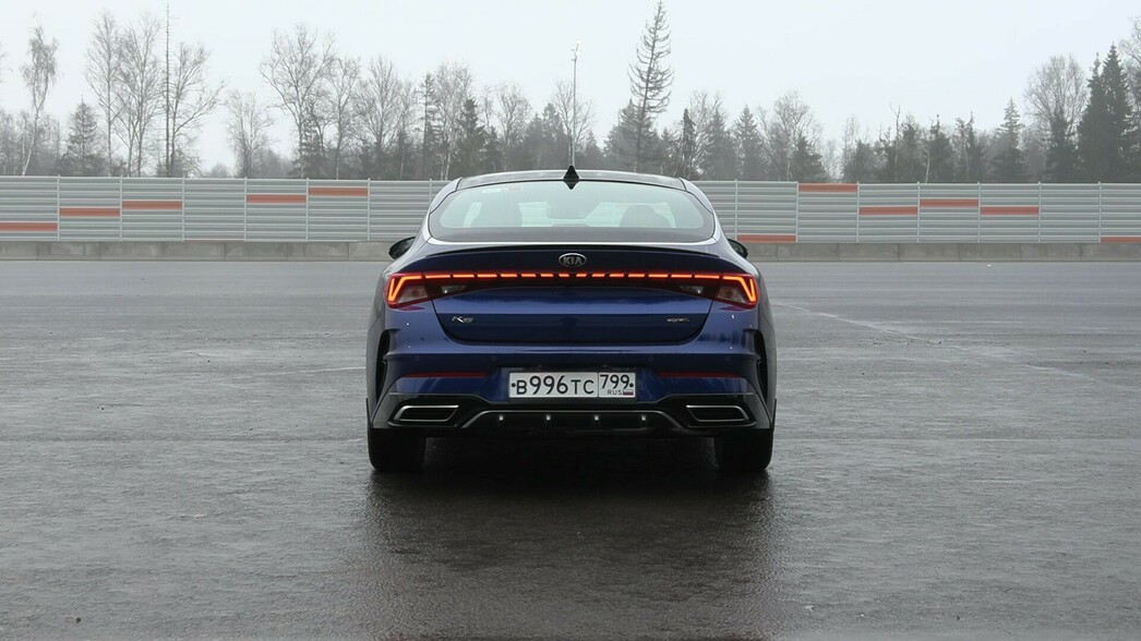 Именно по этой причине в видеообзоре фастбэка нет ни одного слова о ходовой. Однако мы все же ее протестировали, когда возвращались с ЦКАД-3 по другим, менее приятным трассам. KIA K5, как и положено автомобилю со спортивным характером, жестоковат. Перед лежачими полицейскими или иными неровностями приходится тормозить чуть ли ни в ноль. Зато машина уверенно держит траекторию, не кренится, не валится в поворотах.