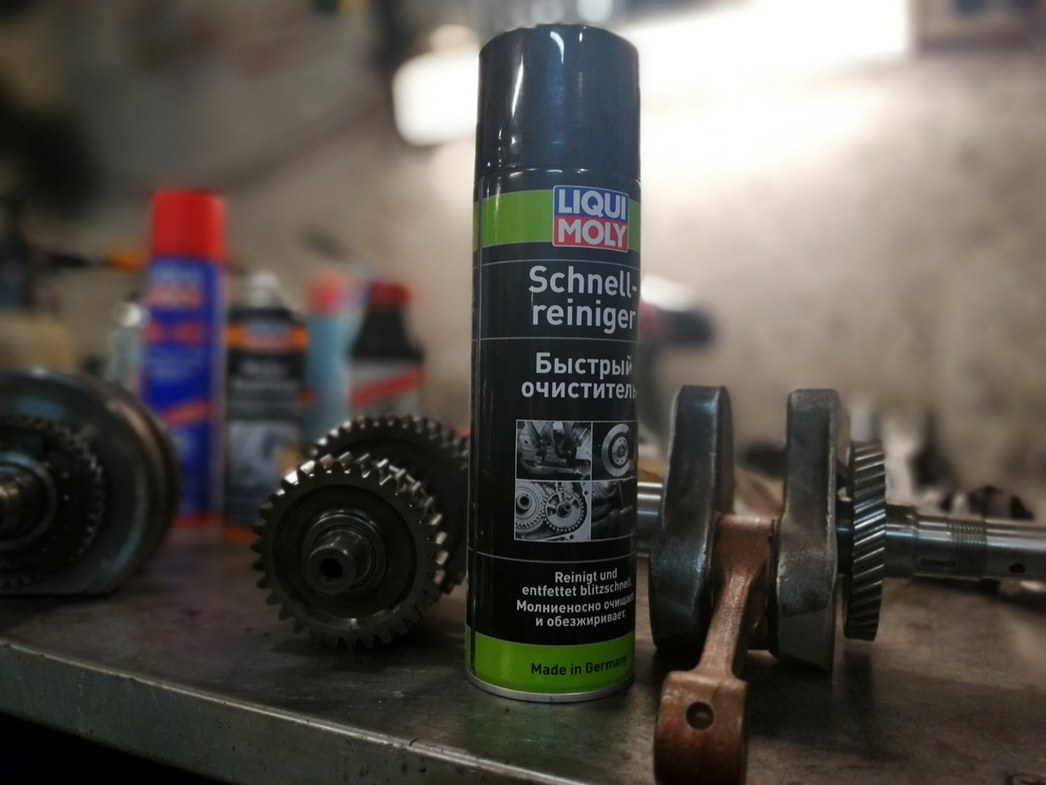 Именно поэтому после каждой поездки рекомендуется откручивать заливные пробки редукторов и обыкновенной коктейльной соломинкой проверять состояние масла. В идеале смазка должна быть золотисто-прозрачной. Если же она мутноватая или почерневшая, «жижу» обязательно нужно поменять. Ну а коли субстанция в редукторе на вид похожа на густое кофе с молоком, то знайте — это эмульсия. И здесь, перед тем как залить новое масло, нужно обязательно несколько раз промыть редуктор. В качестве жидкости для промывки используйте быстрый очиститель спрей Schnell-Reiniger от Liqui Moly. Это средство абсолютно безопасно для сальников и резиновых уплотнителей, прекрасно вымывает все густые маслянистые отложения и обезжиривает поверхности.