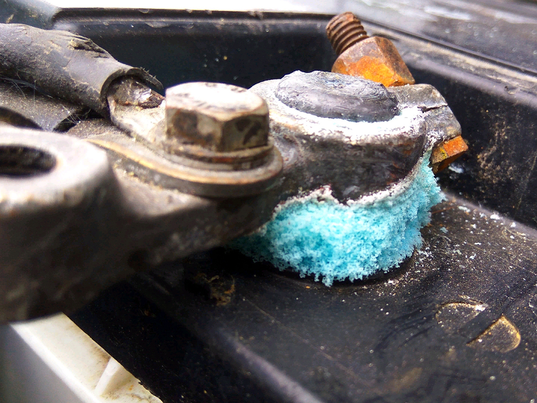 Кстати, об аккумуляторах. Клеммы батареи быстрее всего обрастают окислами, особенно если при заливке АКБ на них попал электролит. Наросты на клеммах препятствуют хорошему контакту, от чего при работе двигателя аккумулятор недозаряжается. Что со временем приводит к выходу из строя как самой «батарейки», так и реле-регулятора напряжения, преобразующего переменный ток, выходящий с генератора, в постоянные 12 Вольт.