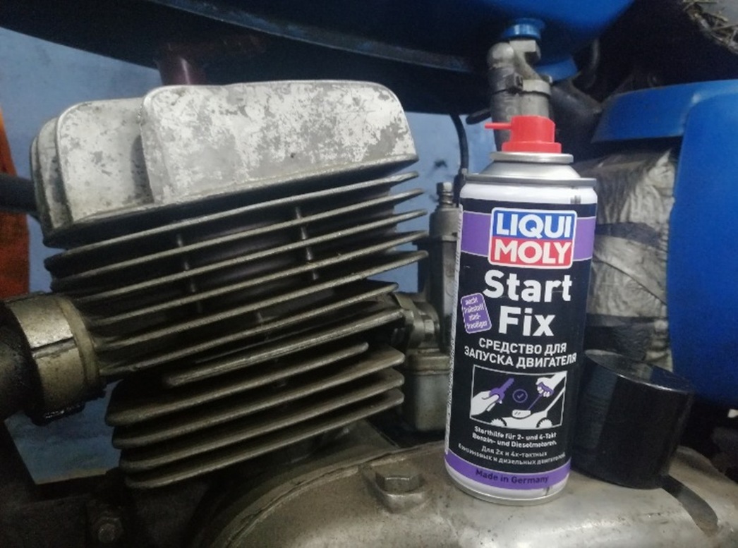 Еще одно чудодейственное средство для легкого запуска мотора после сезонного простоя — Liqui Moly Start Fix. Этот так называемый «быстрый пуск» содержит в своем составе эфиры, сжиженный газ и антикоррозионные компоненты. За счет хорошей воспламеняемости эфира и сильного влаговытесняющего действия, двигатель заводится даже при очень слабой искре. Start Fix существенно ускоряет запуск мотора после длительного простоя, и в условиях высокой влажности, при затруднениях в подаче топлива и слабом аккумуляторе.