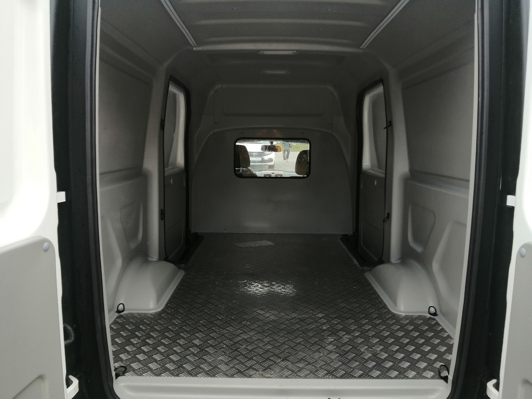 Благодаря такой операции, колесная база машины выросла со стандартных 2467 мм до 3050 мм. И задние двери фактически остались на месте — их интегрировали в конструкцию грузового фургона. Она, кстати, представляет собой стальной силовой каркас, несущий на себе пластиковые панели. Таким образом, в грузовую часть кузова имеется доступ как сзади, через распашные двери, так и с боков — через бывшие боковые пассажирские. Что для потенциальных пользователей очень кстати, так как полезный объем тут приличный: заявлен на уровне четырех кубометров: 2300х1400х1450 мм.