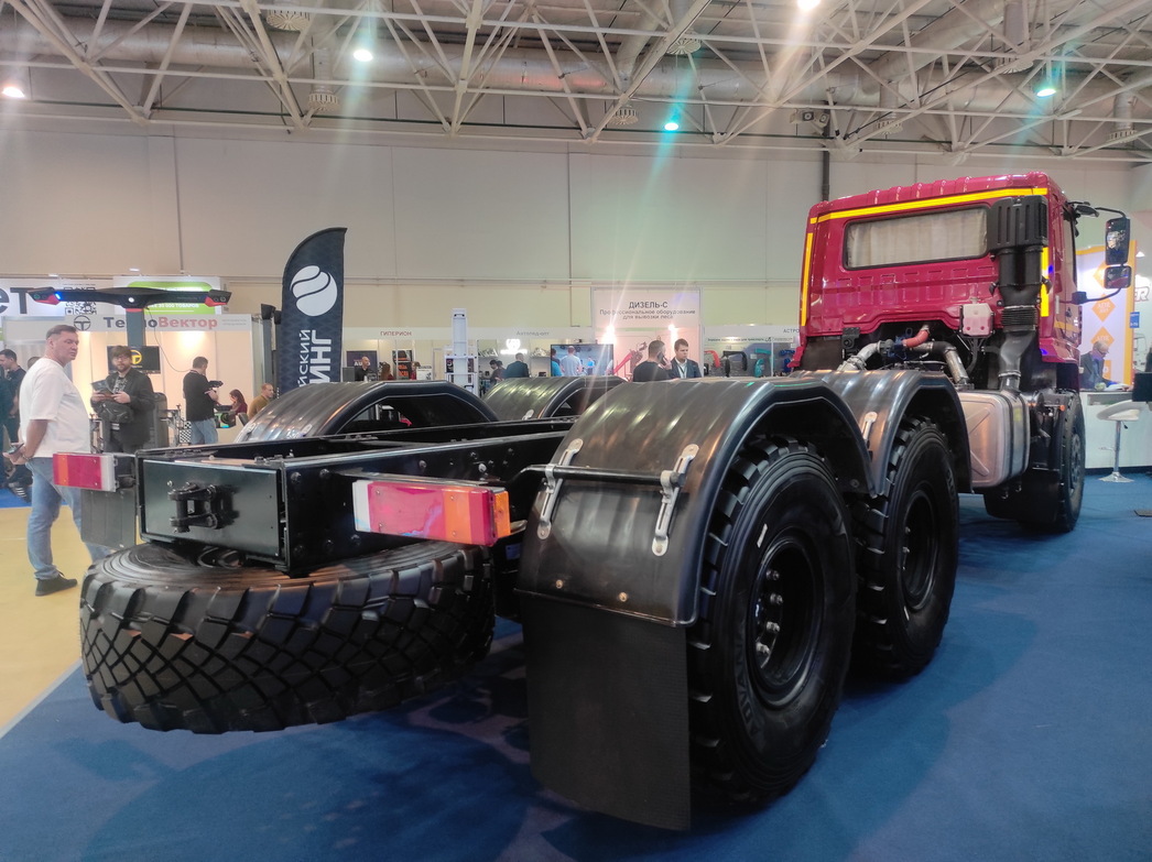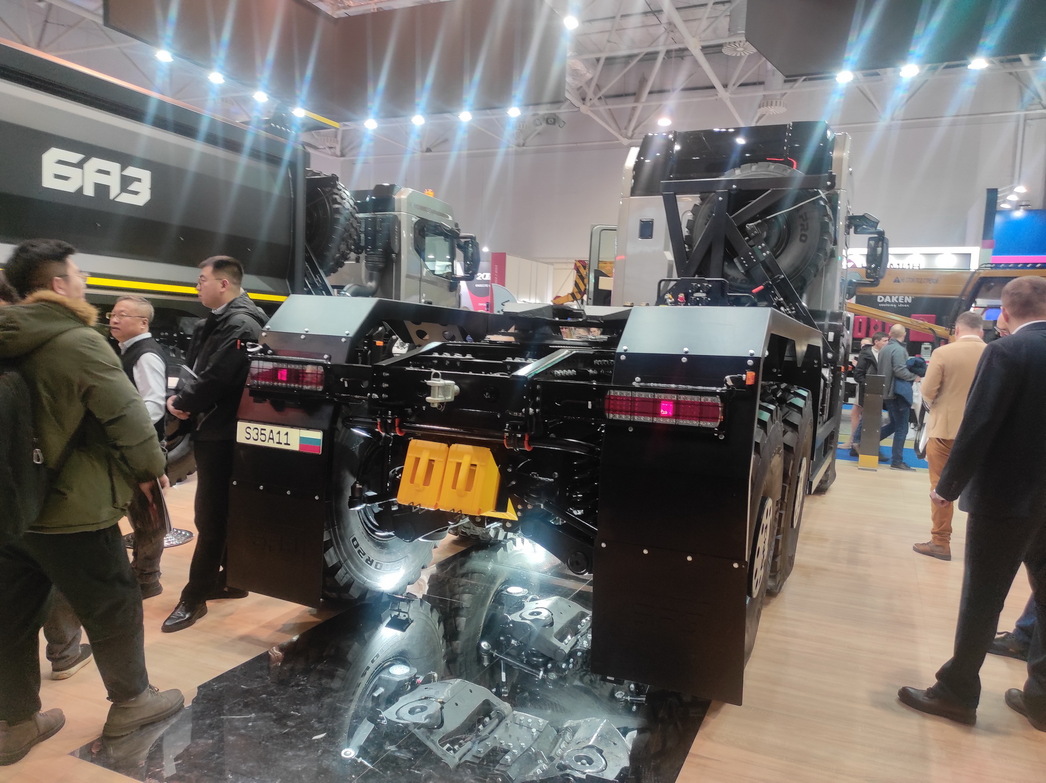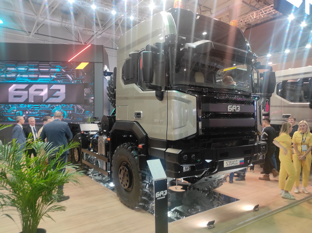 Так, настоящим шоу-стоппером выставки стали два автомобиля БАЗ от свежеобразованной компании АО «Романов». На выставку привезли новые «флагманские» модели: трехосный самосвал и тягач с глубокой (производитель назвал ее «ночной») кабиной.