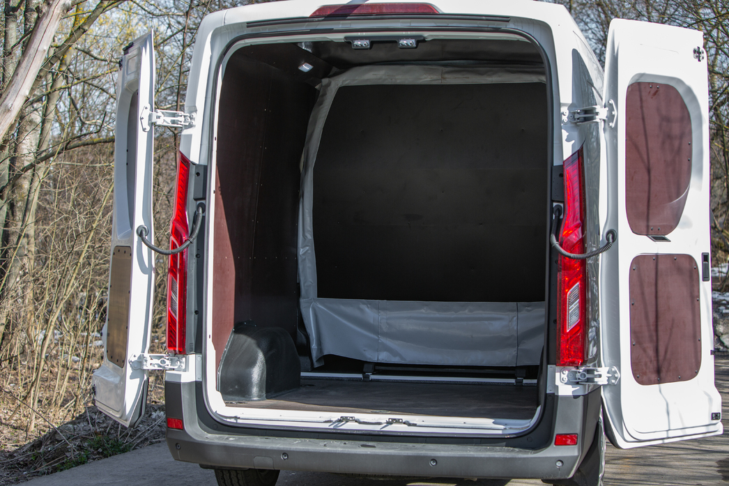 Из важного и рабочего: привлекают внимания усиленные петли распашных дверей на корме, хотя сами дверки «до борта» не распахиваются. Рельса сдвижной двери на боку обильно смазана и беззвучна в работе, но закрывается с усилием. Багажник уже обит ламинированной фанерой, что, несомненно, продлит срок службы и усилит комфорт от взаимодействия с машиной.