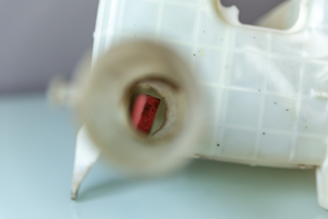 Редакционный Mitsubishi Lancer в кузове универсал позволяет разнообразить диагностику — у него два моторчика стеклоочистителя, в силу наличия форсунки и на заднее стекло. Так вот, один гудел, другой — нет, а жидкость не поступали ни на одно из стекол. Проблема в самом баке, который от времени и некорректной эксплуатации потерял герметичность. Проще говоря, потек.