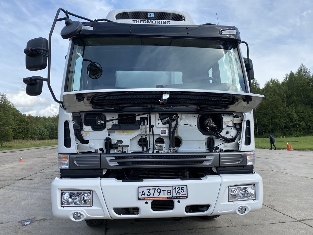 Из Набережных Челнов автомобиль едет дальше на запад, в Рязань, где ему имплантируют фургон-надстройку. И только после этого, отмахав около 10 000 километров, машина попадает на склад московского дилера, где на нее навешивают ценник. Скажем, 4-осный фургон-рефрижератор для компании Х5 стоит 12 000 000 рублей — за такие деньги можно без проблем купить пару новеньких тягачей КамАЗ-5490 NEO. А бортовой грузовик, оборудованный манипулятором — это уже 16 000 000.
