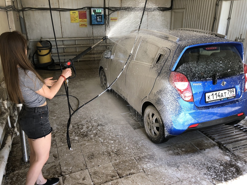 Дабы не возникало вопросов, «как вы уложились в 120 рублей», сразу оговорюсь, что для эксперимента была выбрана обычная круглосуточная мойка в ста километрах от Москвы и маленький автомобильчик Ravon R2 средней степени загрязненности. Глиняные глыбы из колесных арок не вываливались, но бамперы, диски, пороги и двери очень просили купания.