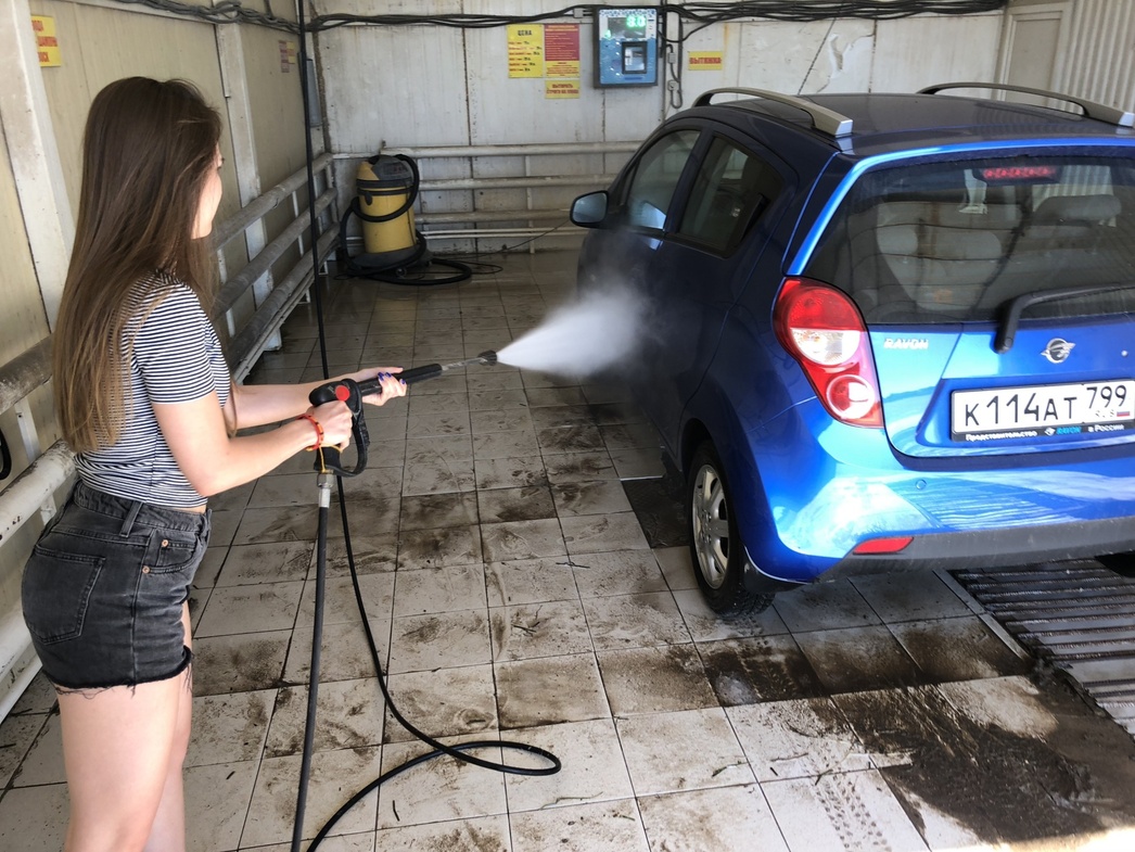 Вернее, не совсем так. Дамы тоже пользуются мойками самообслуживания. Но, как правило, из автомобилей, припаркованных автомобилистками, вылезают крепкие пареньки, вооруженные мелкими деньгами, тряпками и простенькой обувью. Кажется, ваш корреспондент была одним из первых водителей-девушек, решившихся взять в руки пистолет. Взять и не поставить обратно.