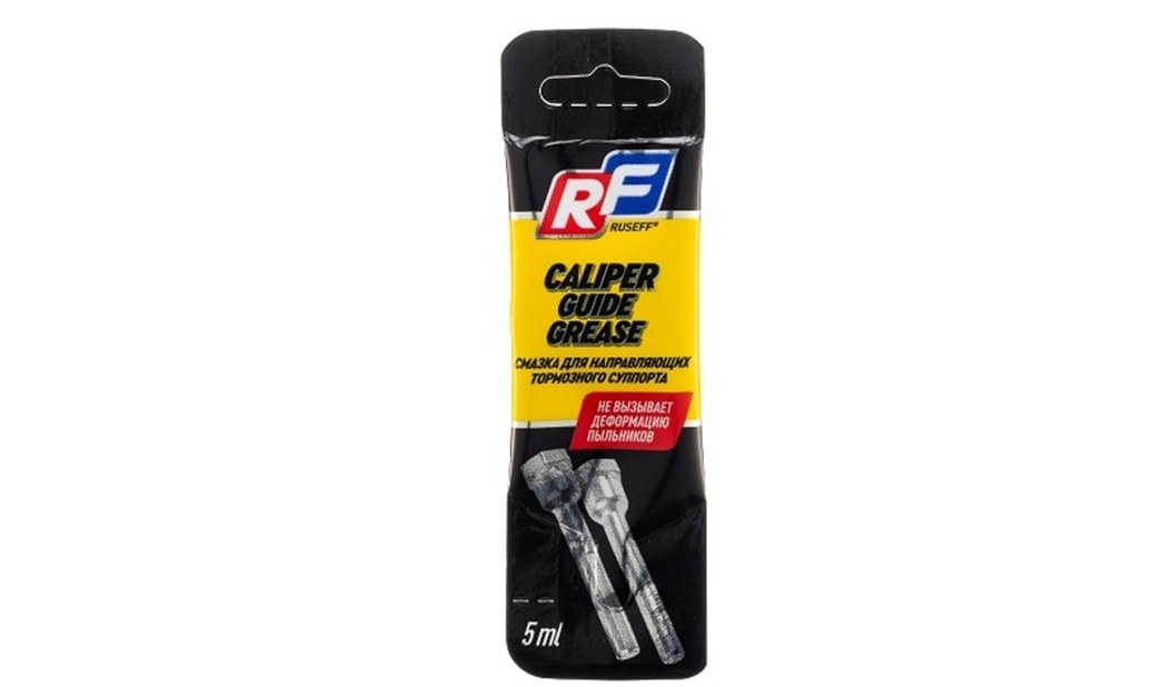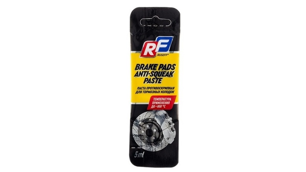 Для обработки тыльной стороны колодок Ruseff выпускает антискрипную пасту, а также жаропрочную медную смазку. Особенность этих продуктов — густая консистенция, позволяющая смазкам хорошо держаться даже на вертикальных поверхностях. При этом они не боятся сверхвысоких температур и весьма устойчивы к вымыванию, а также к воздействию грязи. Есть у Ruseff и эффективная смазка для направляющих тормозного суппорта. Она разработана на основе силиконов с добавлением геля из диоксида кремния. Как показала практика, такая смазка гарантированно исключает закисание направляющих, обеспечивая мягкий и беспроблемный ход колодок при торможении.